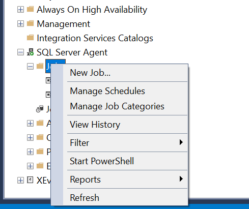 Expand the SQL Server Agent and right click on Jobs and click on New Job…